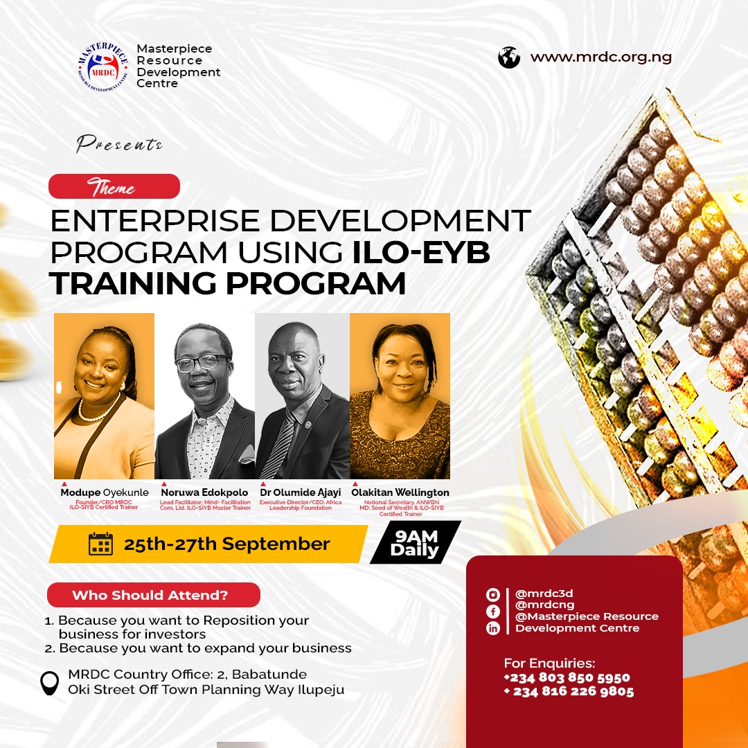 This comprehensive training will give you valuable insights into Strategic Business Expansion, Effective Marketing Techniques, Financial Management, and Innovative Growth Strategies using International Labour Organisation training manuals. Our expert speakers and trainers will share their extensive knowledge and real-world experiences, providing practical tools and actionable steps to propel your business forward.